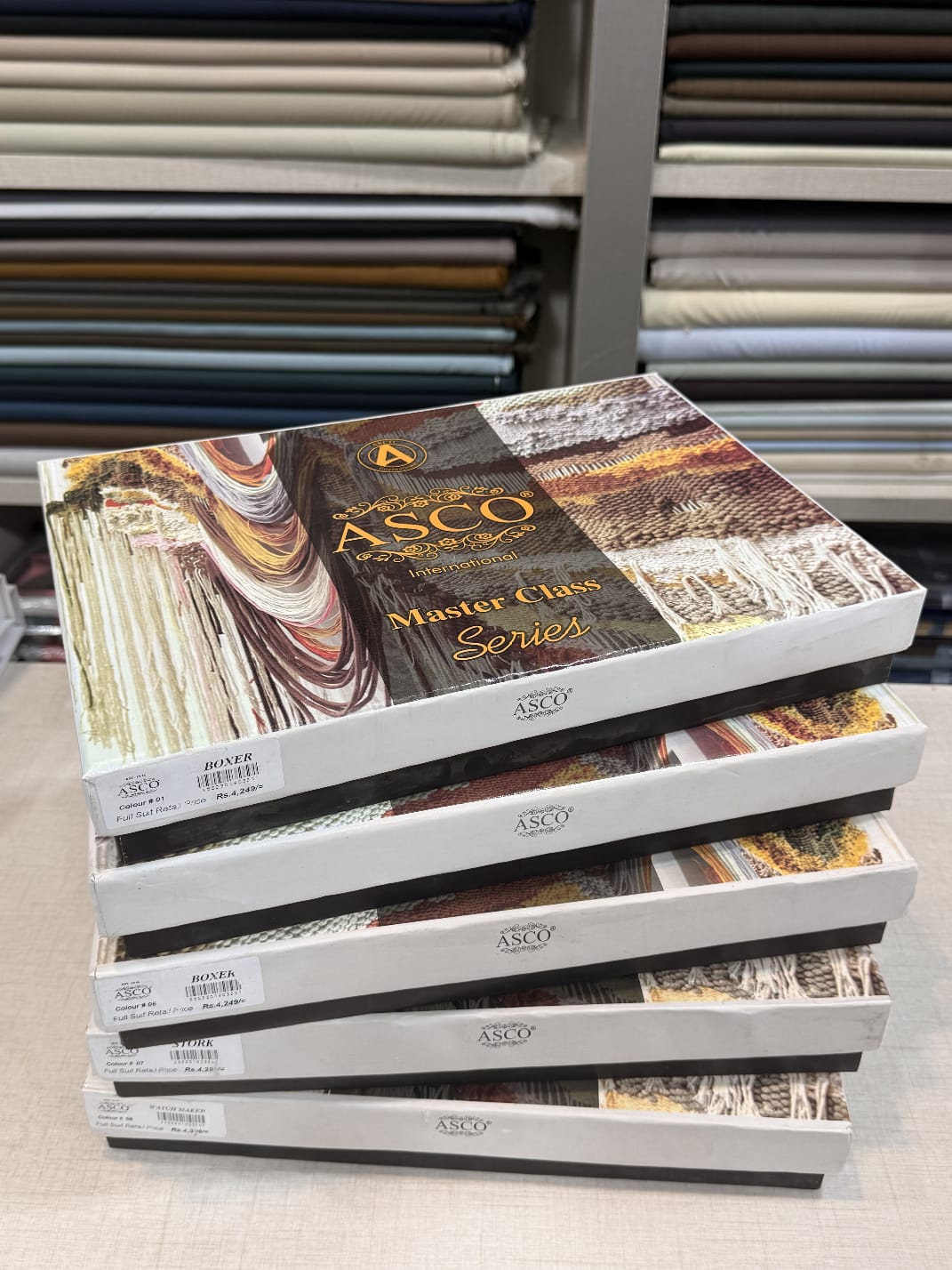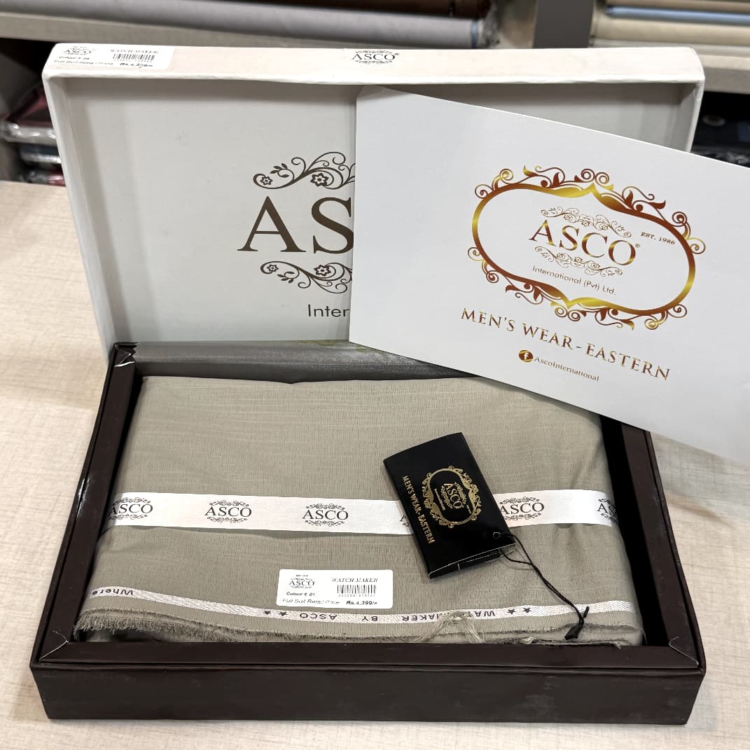Original ASCO Wash & Wear Unstitched Suit with official box packing in elegant [Color].