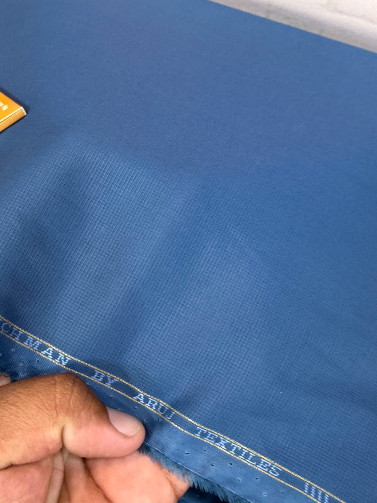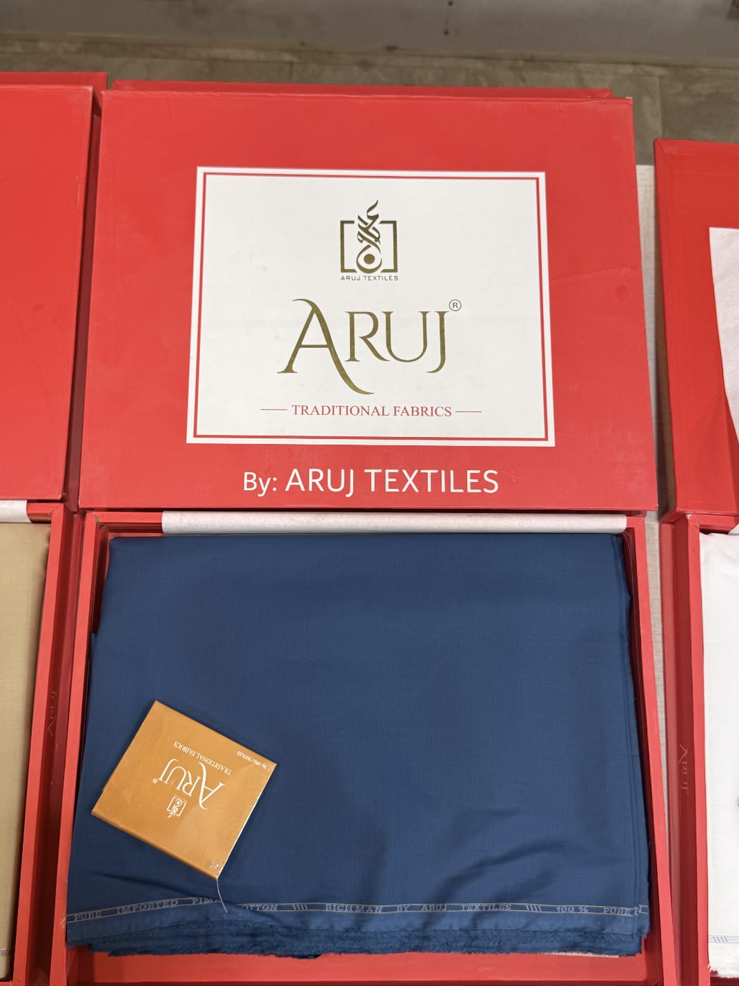 Original Aruj Unstitched Suit with official box packing in elegant Navy Blue.